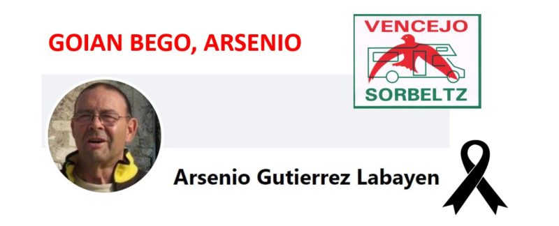 SORBELTZen familia autokarabanistak biziki deitoratzen du atzo, ekainak 12, Arsenio Gutierrez Labayen gure lankide eta ohorezko bazkidearen heriotza.